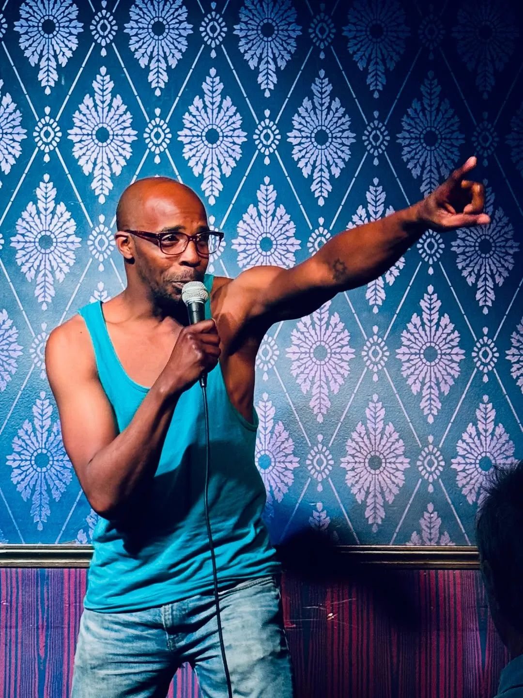 The day-after-Independence-Day crowd came to the Lodge loaded and loud, exactly how Yarnmaze likes them. After a parakeet self-pleasuring bit that somehow ended in a democratic vote, Nicky B took the stage and immediately clocked a possible first date in the front row, then rolled through kidney transplants, quitting porn because of his dead grandfather's screensaver, and a phlebotomist rant so specific it could only come from lived experience. Renny Blackett brought Houston pride and a wedding-in-Montana story that derailed into a genuine philosophical debate: do trees look at log cabins and say "you dead tree, bitch"? The crowd said yes, enthusiastically. Producer Katie Mark casually ranked history's serial killers, earning huge laughs for calling Ted Bundy ugly "in fixable ways" and dunking on Jeffrey Dahmer for being a Packers fan. Elaine Golden opened with her dad dying when she was young, pivoted to a Princeton flex, and somehow landed on flossing. Larry Smith tied the whole night together, roasting everyone who came before and admitting a handsome Nashville opener once short-circuited his brain.
