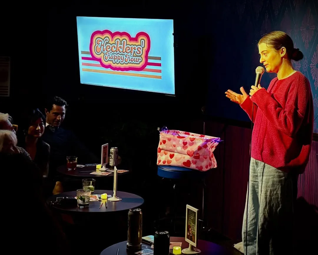 Jan Slavin brought the ukulele and a lifetime of not caring what anyone thinks. She sang about disappearing eyebrows, roasted department stores for only carrying celebrity brands, and shared her adventures on senior-focused dating apps. A love bucket question about a certain adventurous bedroom request got her best deadpan of the night — delivered with the authority of someone who has nothing left to prove.